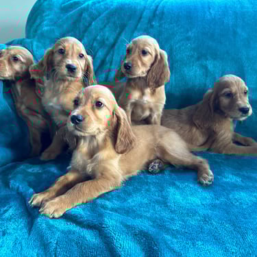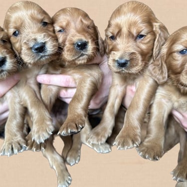 Our lovable Golden Irish puppies are the perfect blend of the friendly Golden Retriever and the elegant Irish Setter. These adorable pups inherit the best traits from both breeds, resulting in a loyal, intelligent, and energetic companion.